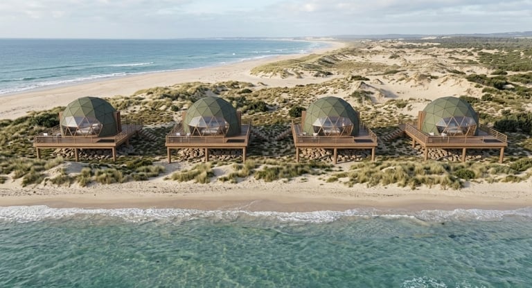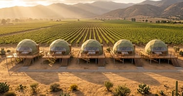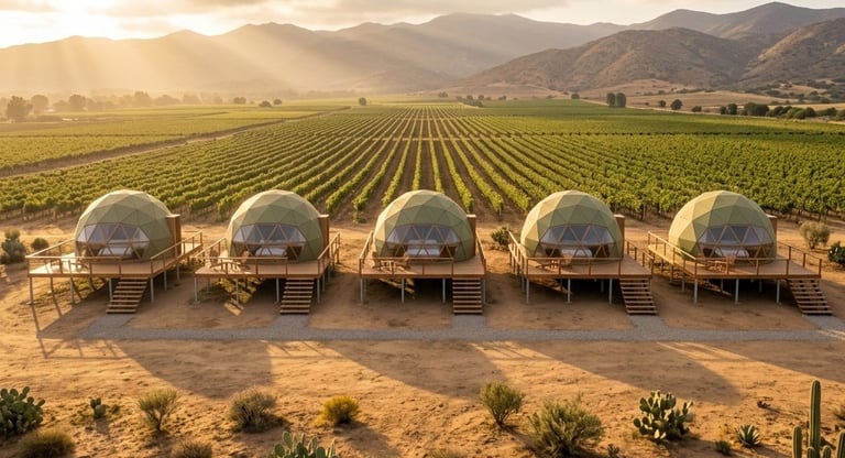 Un Domo Geodésico ofrece una estética moderna y futurista, atrayendo al turismo de alto nivel y glamping.